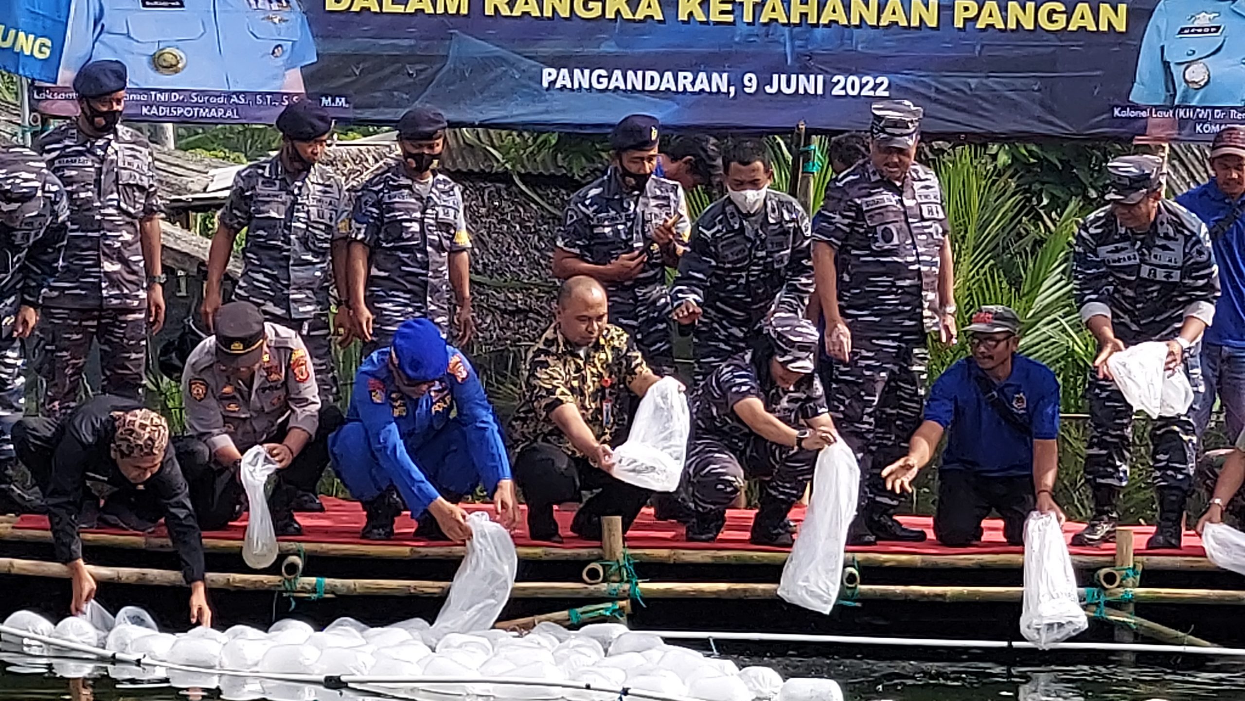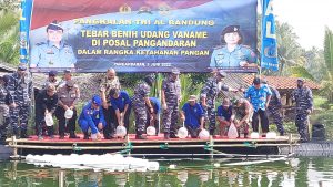Bandung, 09 Juni 2022,– Komandan Lanal Bandung Kolonel Laut (KH/W) Dr. Renny Setiowati, S.T., M.Sc., M.Tr. Hanla., mendampingi Kadispotmaral Laksamana Pertama TNI Dr. Suradi A.S., S.T., S.Sos., M.M., menutup Pelatihan Budidaya Udang Vaname kepada masyarakat pesisir Tahun 2022 dalam rangka penyelenggaraan ketahanan pangan masyarakat pesisir tahun 2022 bertempat di Dusun Bojong Salawe, Desa Karang Jaladri, Kec. Parigi, Kab. Pangandaran, Provinsi Jawa Barat, Kamis (09/06).