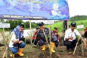 Lebih lanjut, Kepala Dinas Kelautan dan Perikanan Provinsi Jawa Barat Ibu Rinny Cempaka, S.Si., M.T., menyampaikan bahwa Provinsi Jawa Barat dengan garis pantai sepanjang lebih dari 600 kilometer, memiliki potensi maritim yang luar biasa Wilayah pesisir kita bukan hanya sumber kehidupan bagi jutaan nelayan dan masyarakat pantai, tetapi juga benteng alami yang melindungi daratan dari ancaman abrasi, banjir rob, dan perubahan iklim. Tantangan seperti degradasi ekosistem, pencemaran, dan konflik pemanfaatan ruang pesisir semakin mendesak, Oleh karena itu, sinergi antar stakeholder menjadi kunci utama. Kegiatan penanaman mangrove.